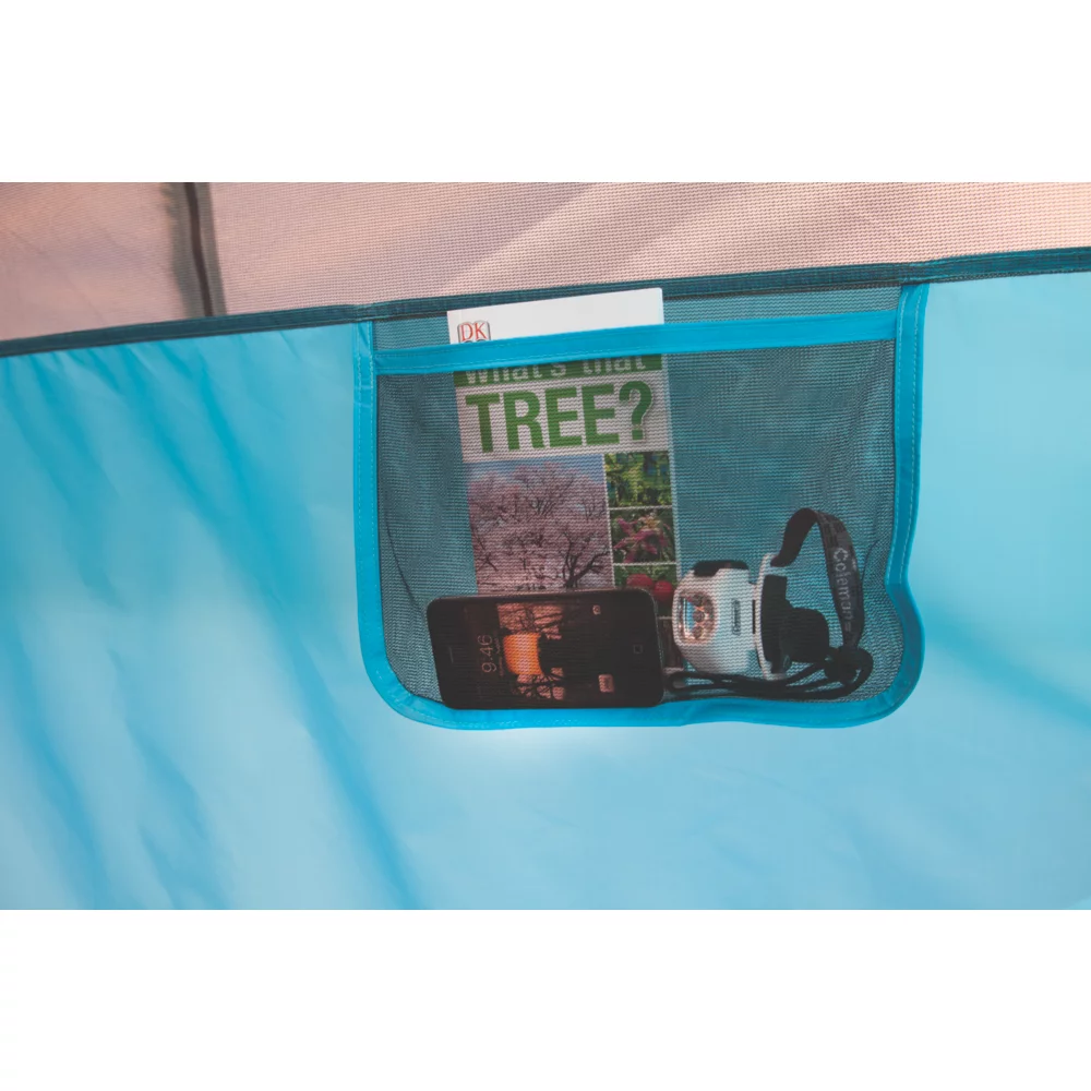 Everyone will look forward to family time when you take them camping in the Coleman® Octagon 98 8-Person Tent. You’ll enjoy an open and roomy living area with the unique ocagon shape and vertical walls of this tent. If it rains, this tent Keeps You Dry…Guaranteedâ„¢, thanks to the WeatherTecâ„¢ system, which uses a tub floor with patented corner welds, protected seams, and a covered zipper to help keep water out. Meahwhile, the strong frame is tested to withstand 35+ MPH winds. You’ll get even more weather protection from an included rainfly that has vents built into it to increase air circulation to help you stay cool and comfortable. Setup is simple with the color-coded poles and fly, the patented pin-and-ring system, and snag-free Insta-Clipâ„¢ suspension. Illumilineâ„¢ reflective guy lines are more visible at night so you don’t get tripped up if you need to take a walk in the dark. Two doors make it easy to enter and exit your tent. Inside, there’s enough room to stretch out on two queen-sized airbeds, and storage pockets help to keep small items organized. When it’s time to head home, the tent fits into an included carry bag for easy storage and transport.
